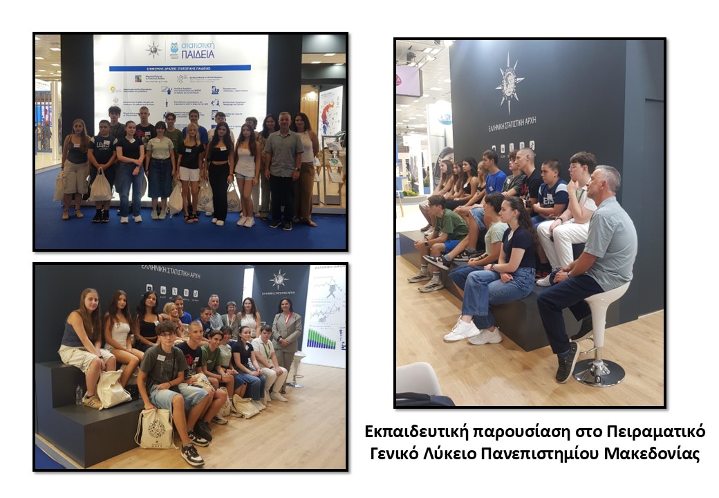 Κατά τη διάρκεια της 89ης Διεθνούς Έκθεσης Θεσσαλονίκης (ΔΕΘ), η Ελληνική Στατιστική Αρχή (ΕΛΣΤΑΤ) ανέδειξε για άλλη μία φορά τη δέσμευση στην στρατηγική της για την «Ανάπτυξη της Στατιστικής Παιδείας στην Ελλάδα». Κεντρικό στοιχείο της παρουσίας της αποτέλεσε μια σειρά εκπαιδευτικών δράσεων για μαθητές και μαθήτριες Γυμνασίων και Λυκείων, με στόχο την προώθηση της αξιοποίησης των επίσημων στατιστικών δεδομένων ως εργαλείο για τη λήψη αποφάσεων και την καλύτερη κατανόηση του κόσμου.
