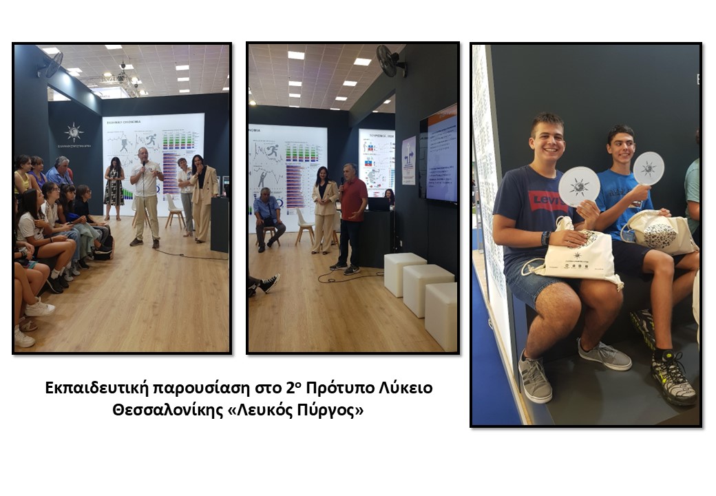 Κατά τη διάρκεια της ΔΕΘ, πραγματοποιήθηκαν εκπαιδευτικές παρουσιάσεις τις οποίες παρακολούθησαν μαθητές Γυμνασίων και Λυκείων της Θεσσαλονίκης. Οι μαθητές, καθώς και όσοι βρέθηκαν στο περίπτερο, ενημερώθηκαν για τα αποτελέσματα της «Απογραφής Πληθυσμού - Κατοικιών 2021» και την αποτύπωση των αλλαγών στα δημογραφικά, κοινωνικά και οικονομικά χαρακτηριστικά του πληθυσμού της Ελλάδας. Επίσης, με τη βοήθεια του εκπαιδευτικού παιχνιδιού με τίτλο «Τα μυστήρια της Στατιστικής» συζητήθηκαν περιπτώσεις κακής χρήσης της στατιστικής, από άγνοια ή σκοπιμότητα, που έχουν ως αποτέλεσμα την παραπλάνηση των αποδεκτών.