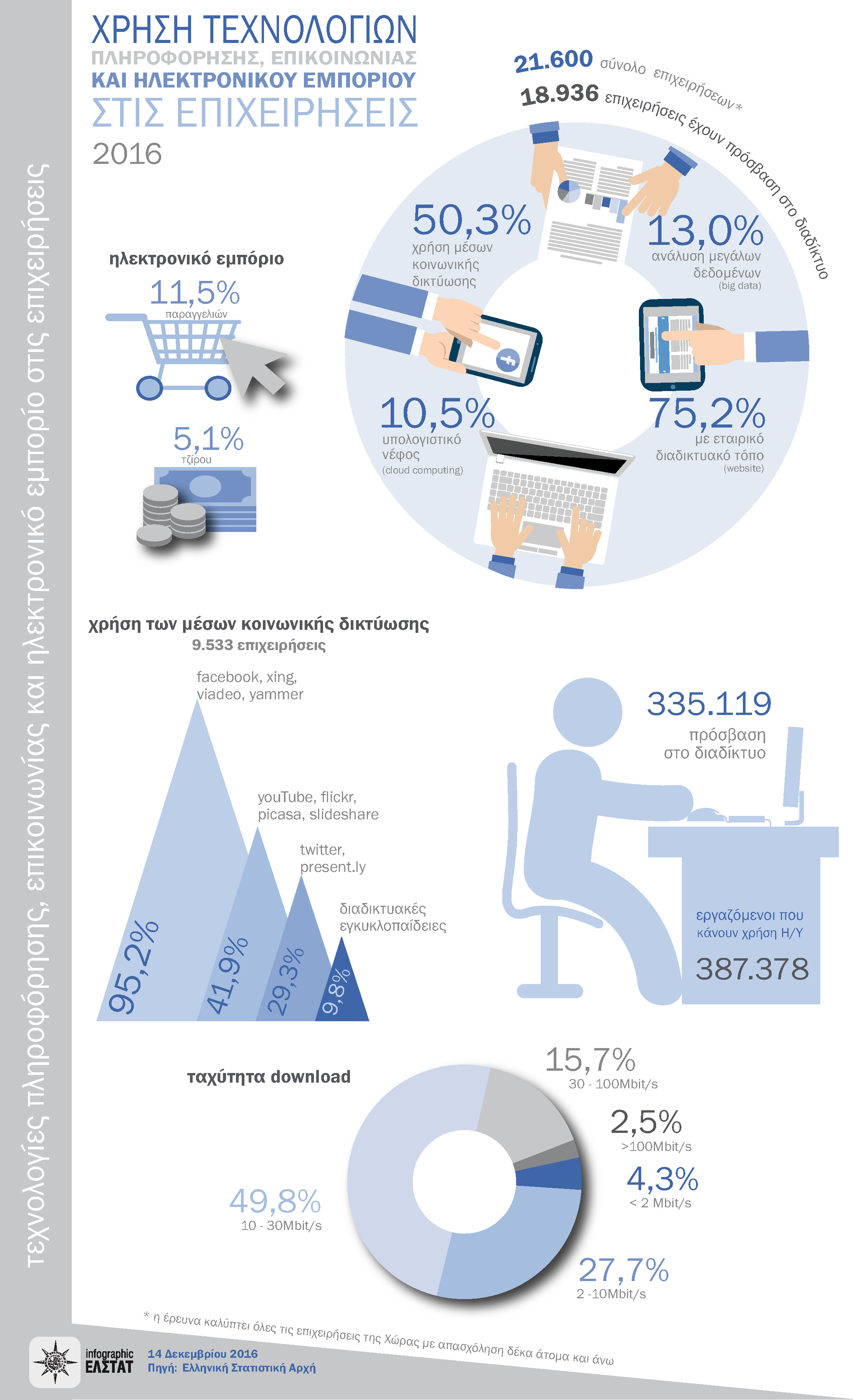 ΕΛΣΤΑΤ, Χρήση Τεχνολογιών Πληροφόρησης και Ηλεκτρονικού Εμπορίου στις Επιχειρήσεις. Ημερομηνία δημοσίευσης: 14.12.2016
