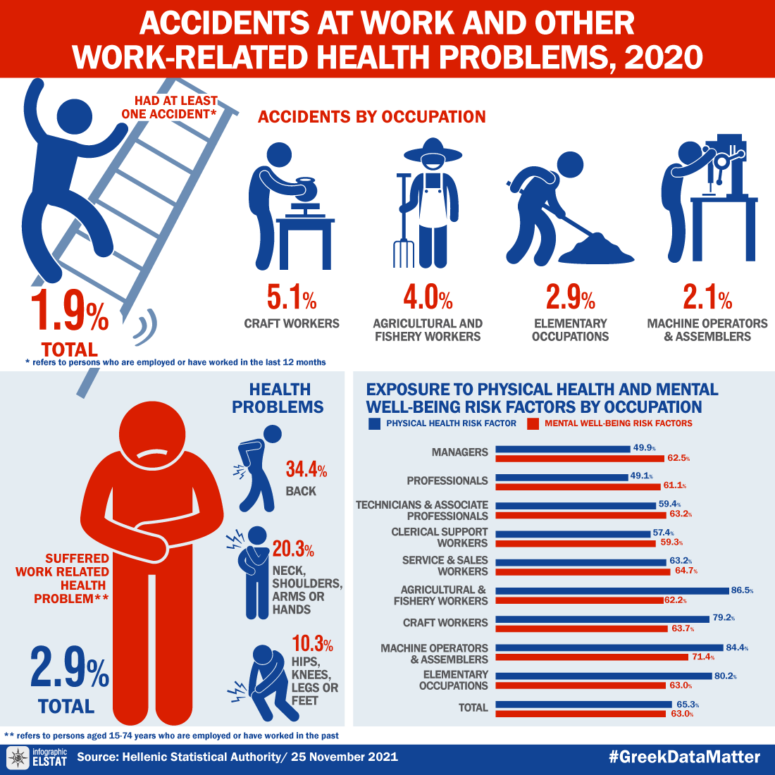 The Hellenic Statistical Authority (ELSTAT) announces data on Αd hoc Module on Accidents at Work and Other Work-related Health Problems for the year 2020