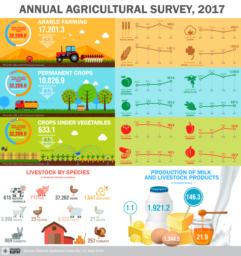 The Hellenic Statistical Authority (ELSTAT) announces the final results of the 2017 Annual Agricultural Statistical Survey.