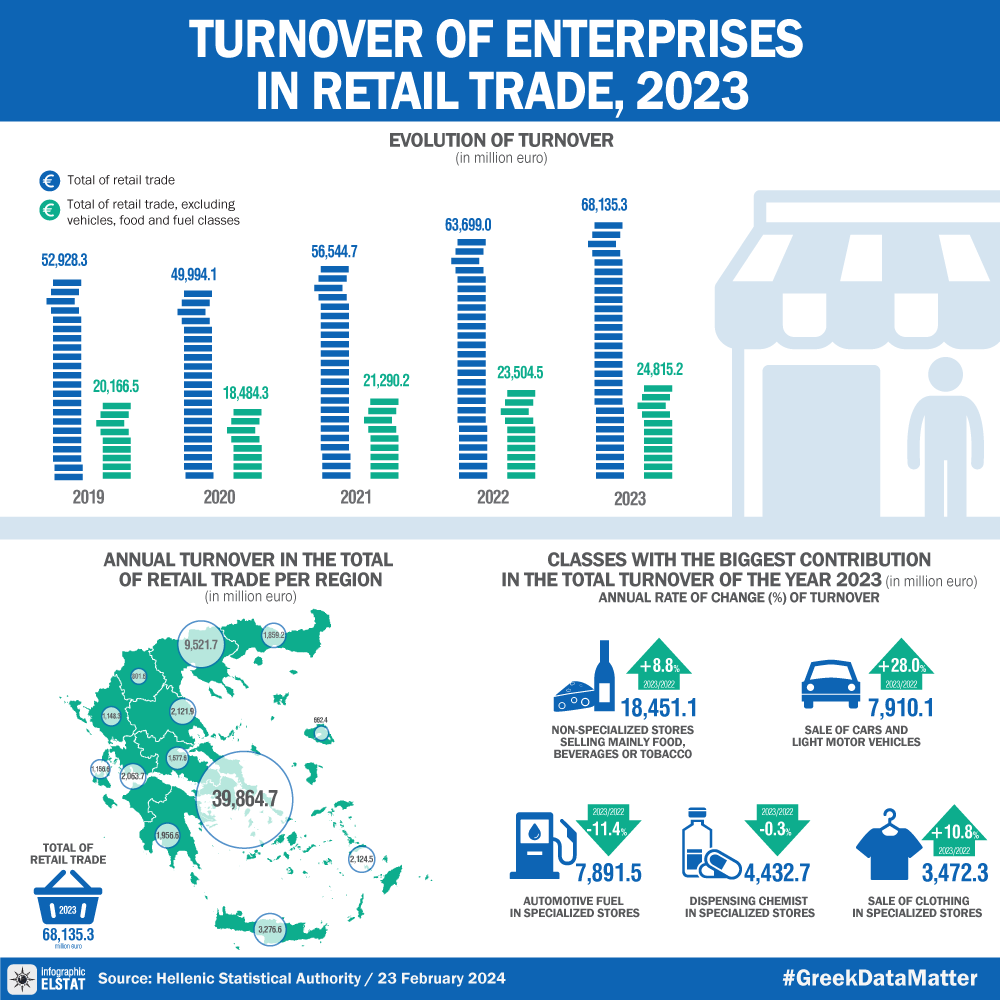 ELSTAT, Evolution of Turnover of Enterprises in Retail Trade. Release date: 23.2.2024