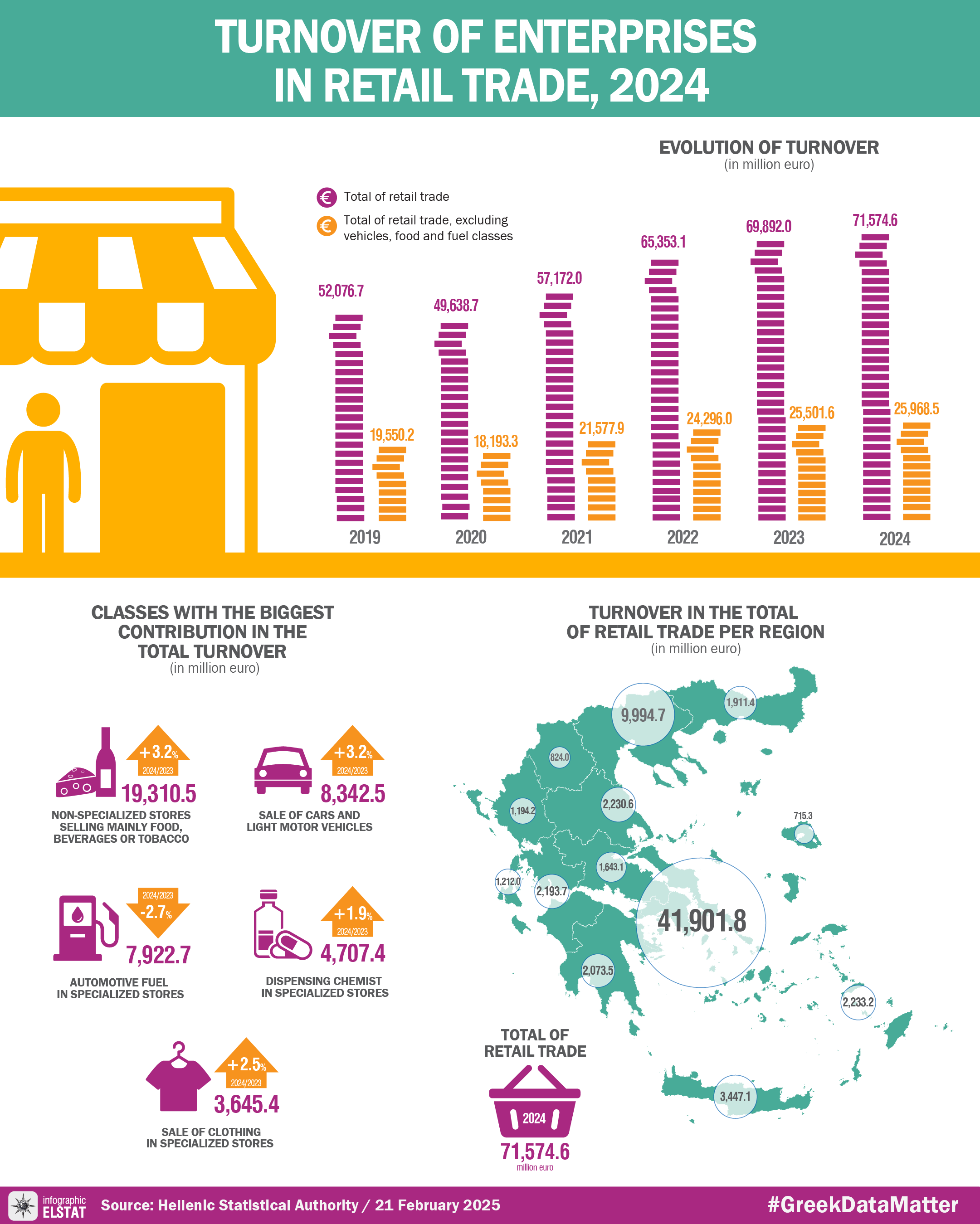 ELSTAT, Evolution of Turnover of Enterprises in Retail Trade. Release date: 21.2.2025