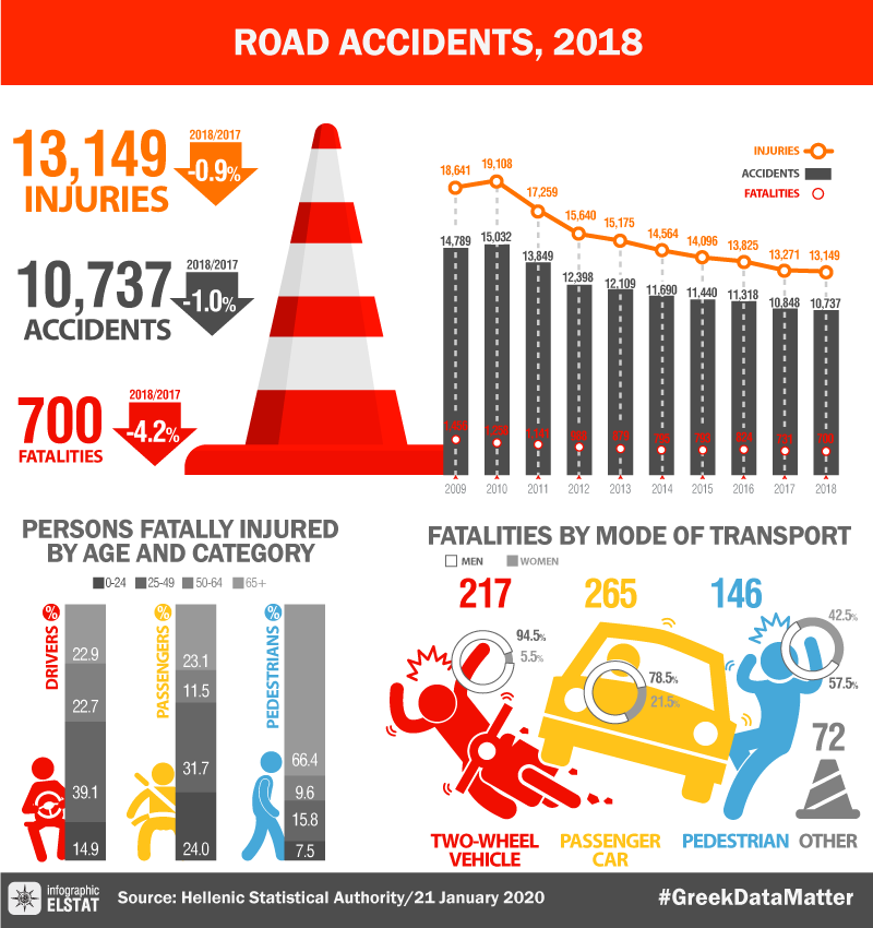 ELSTAT, Road Traffic Accidents - Yearly / 2018. Release date: 21.1.2020