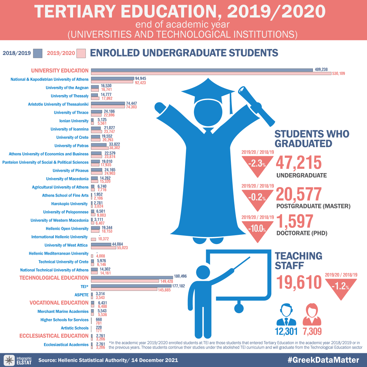 ELSTAT, Universities (students,Institution,academic staff) (beginning & end of the academic year). Release date: 14.12.2021