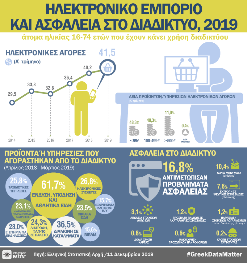 The Hellenic Statistical Authority (ELSTAT) announces data on the use of e-Commerce and Internet Security for 2019.
