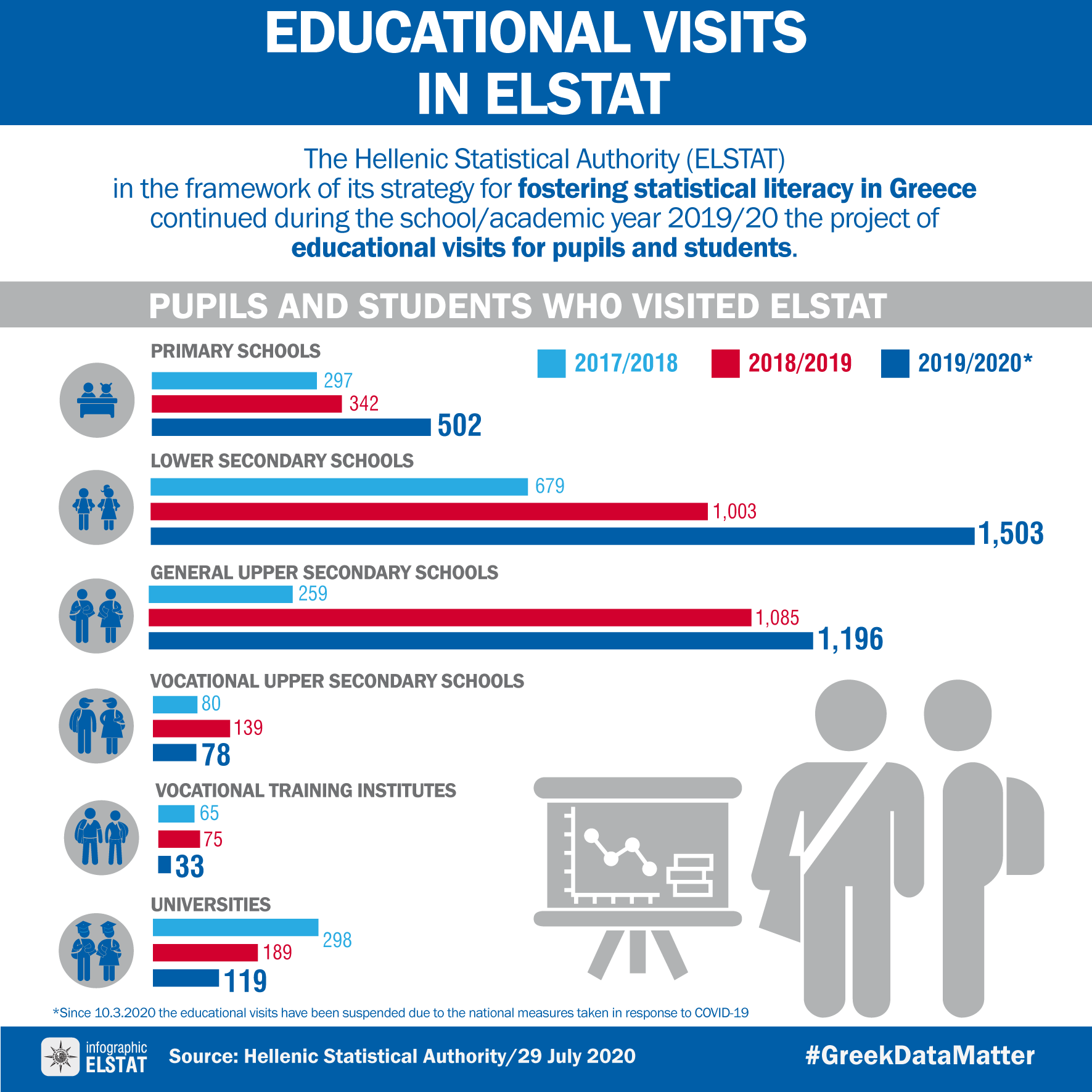 ΕΛΣΤΑΤ, Επισκέψεις μαθητών και σπουδαστών στην Ελληνική Στατιστική Αρχή (ΕΛΣΤΑΤ). Ημερομηνία δημοσίευσης: 29.7.2020