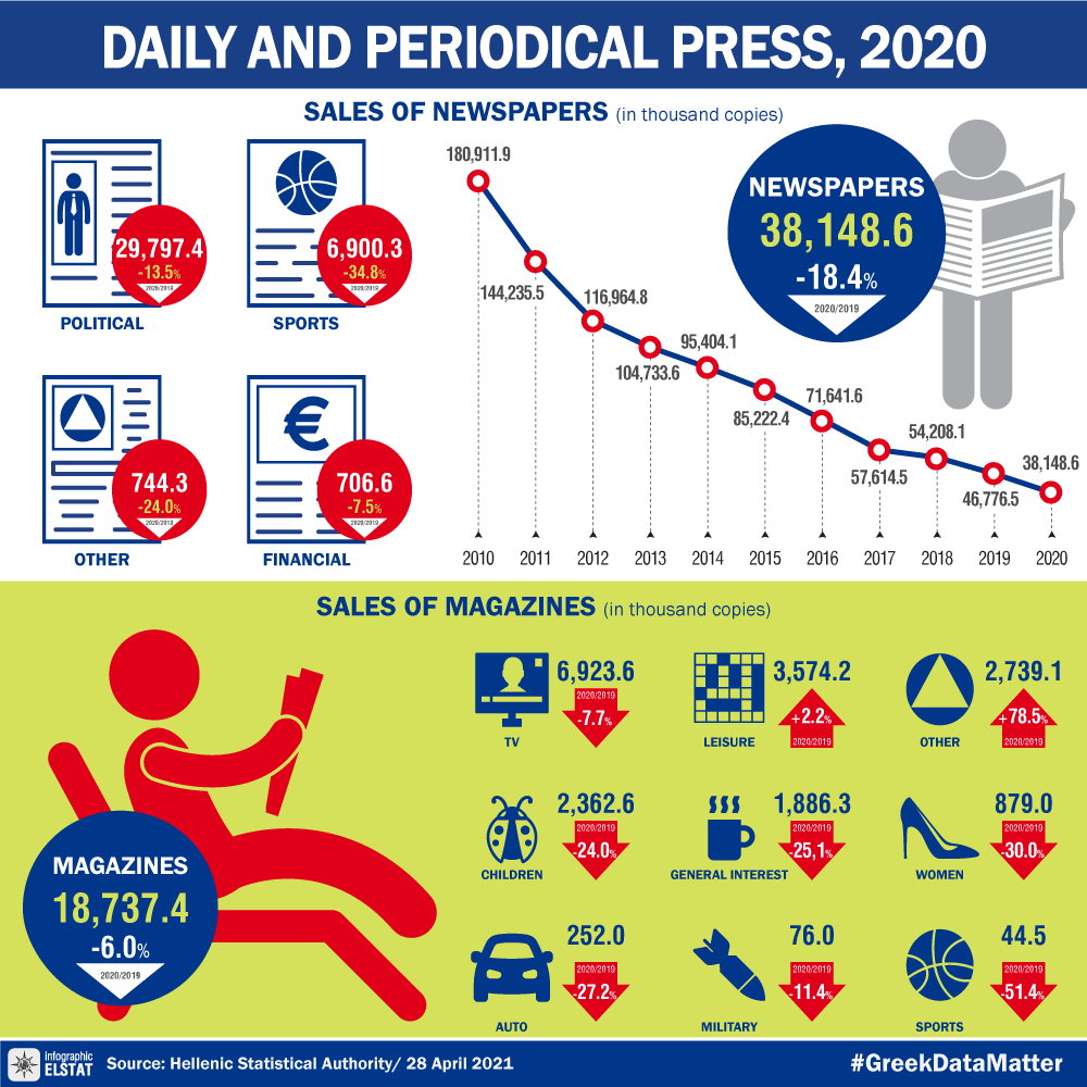 ΕΛΣΤΑΤ, Έρευνα Ημερήσιου και Περιοδικού Τύπου. Ημερομηνία δημοσίευσης: 28.4.2021