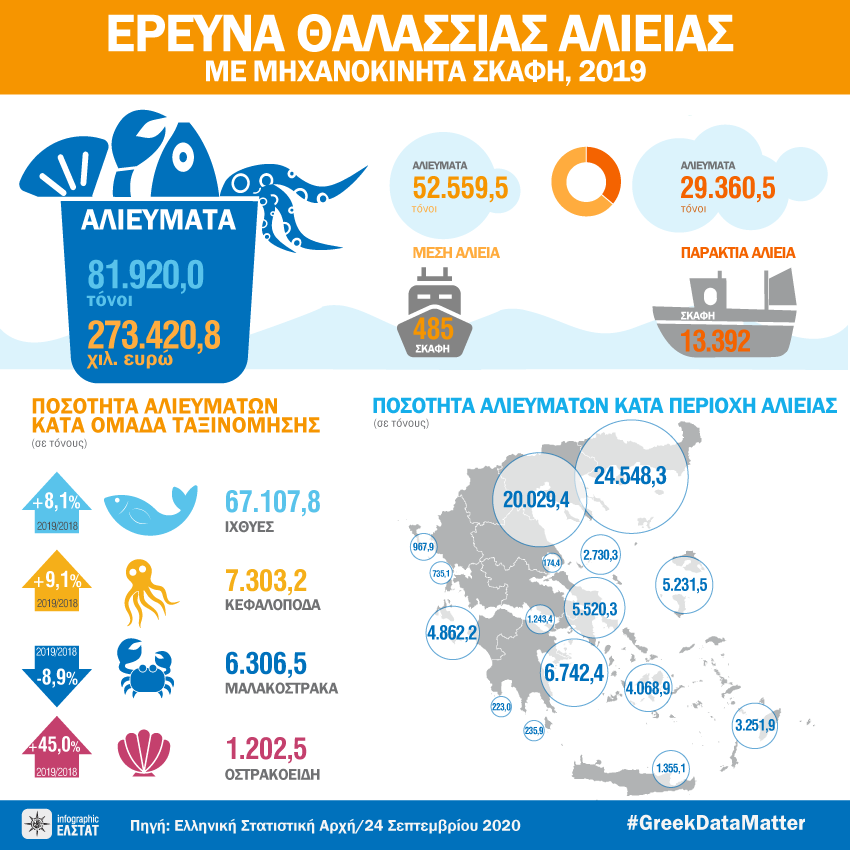 ΕΛΣΤΑΤ, Έρευνα Θαλάσσιας Αλιείας.Ημερομηνία δημοσίευσης: 24.09.2020
