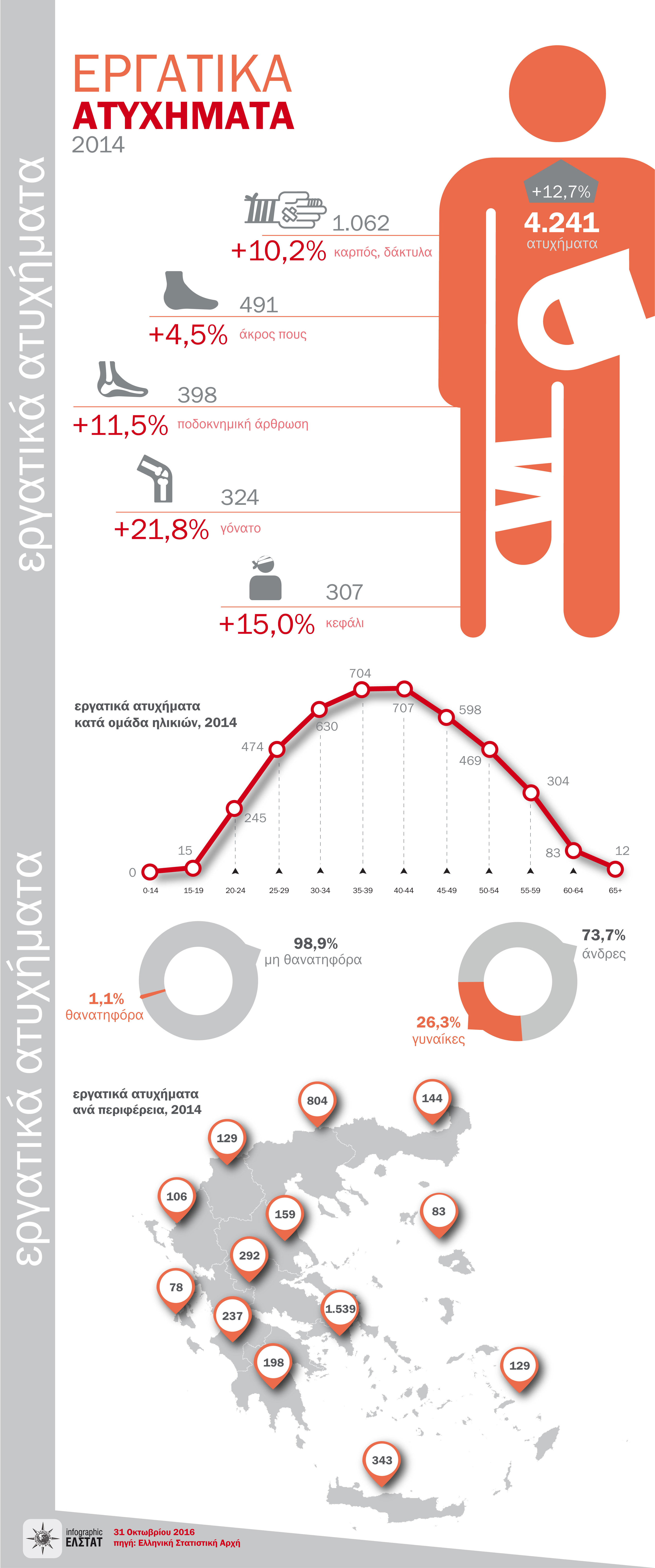 ΕΛΣΤΑΤ, Εργατικά Ατυχήματα. Ημερομηνία δημοσίευσης: 31.10.2016
